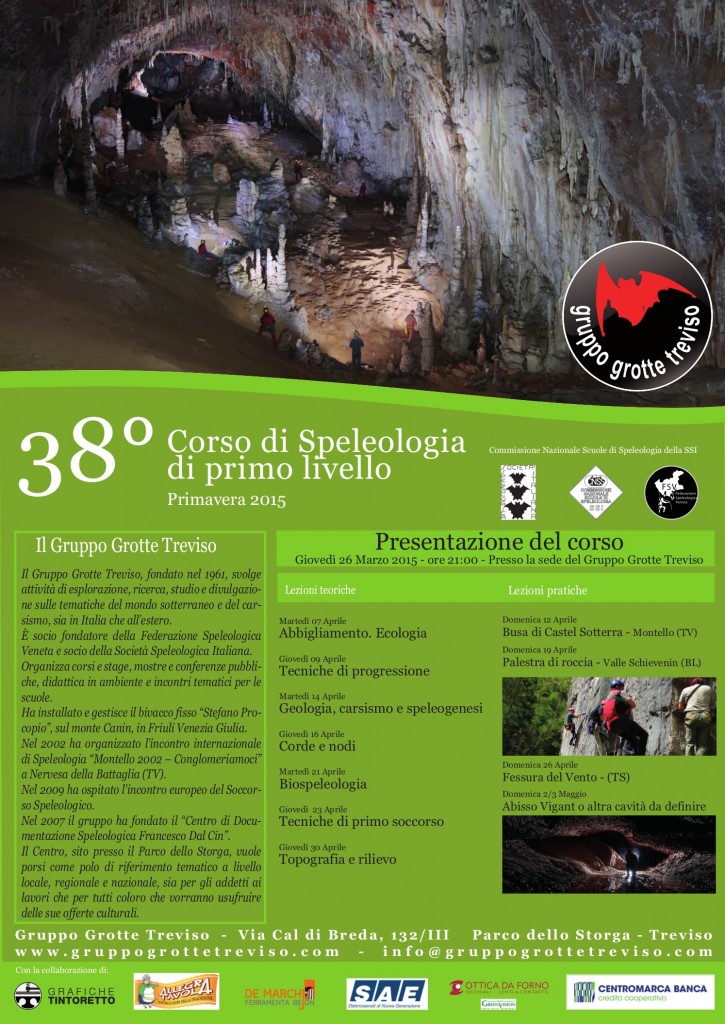 Il Gruppo Grotte Treviso organizza il 38° corso di speleologia di primo livello (primavera 2015), ufficialmente riconosciuto dalla Società Speleologica Italiana.
